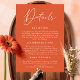Ensure your guests have all the important wedding details with this modern calligraphy Verona Sunset details enclosure card. Featuring a warm sunset orange background, this card is both stylish and functional, making it perfect for modern, elegant, and minimalist wedding themes. The graceful calligraphy heading adds a sophisticated touch, while the sleek layout ensures your reception, accommodations, and website information are easy to read. Fully customizable, this insert is ideal for pairing with your wedding invitations to provide extra details for your guests.