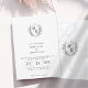 Minimalist simple black and white monogram crest wedding Invitation: Vintage-inspired line art monogram crest with elegant typography. On the back a modern large monogram creating a stylish back. Depending on what letter is in the monogram it might need some adjustment. Enter design tool to move the letters to your liking.