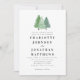 Simple Woodland Pine Evergreen Forest QR Code Wedding Invitation Watercolor Fir Trees on crisp white Background