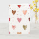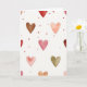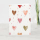 This card shows a scattered pattern of watercolor-style hearts floating across an off-white background with a light paper texture. The hearts vary in size, with a few larger ones drifting through the center and many smaller ones sprinkled around them. Colors range from deep ruby red and rosy pink to peach, soft brown, and a muted sage green, with gentle, see-through layers where the paint looks washed in. The edges of the hearts look slightly feathered, and some have darker spots where the color gathers, giving them a tender, imperfect feel. There isn’t a single scene or character—just a calm field of hearts that feels like a quiet reminder of care and closeness. There’s no text on the front, so the design leaves room for your own words and makes the message feel more personal 🥰. It’s a sweet choice for romance or friendship because it says “I’m thinking of you” without needing to be loud or complicated ❤️. Hope it helps you share your Valentine’s Day sentiments with someone you care about.