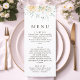 A simple and elegant wedding menu featuring watercolor eucalyptus and white roses. The clean design brings a touch of natural beauty and sophistication to your wedding table setting. Perfect for modern, minimalist, and romantic celebrations.