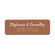 Enhance your wedding invitations with our charming, classic, and simple burnt-orange return labels, designed to bring a touch of elegance and convenience to your special day. Their polished, minimalistic design beautifully complements your wedding theme, offering a personalized, professional finish to your invitations.