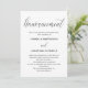 This simple black and white wedding cancellation notice lets invited guests know that the ceremony has been cancelled due to unforeseen events, and that you will contact them when it has been rescheduled.