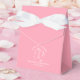 Rewrite this listing description using the following keywords: custom printed favor boxes,monogrammed,monogram,simple,personalized wedding favor boxes,bride and groom names,thank you,minimalist,modern,pink, "These simple wedding favor boxes features a classy monogram encircled by floral line art in white over a pink background. Use the template fields to add your personalized information. Order as many as you like from small quantities to bulk orders. To see the matching elegant wedding stationery suite and more custom printed favor boxes for weddings visit www.zazzle.com/dotellabelle