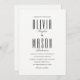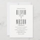 Plain white envelopes are included with paper invitations and will come to fit the invitation size you select. If you don’t need the envelopes, you may choose to not receive them by selecting the dropdown below "Envelopes" and choosing "None." If you’d like to have a design on your envelopes, you can browse all of these available envelopes to find the design that complements your Simple Wedding Invites Modern Elegant Typography.