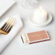 Simple, elegant, modern personalized terracotta wedding favor matchboxes with elegant gold rope heart.
