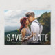 Stylish Simple Modern And Elegant Save The Date postcard. This design features a modern hand lettered script font and your names, date and location of the wedding on the front of the card and 2 photos. Add your unique custom message on the back in trendy white block lettering. Please do not hesitate to contact me if you require assistance with this design.