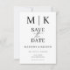 These elegant, modern wedding or bridal shower save the date feature a simple black and white text design that exudes minimalist style. Add your initials or monogram to make them completely your own.