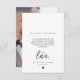 A modern twist on elegance with our unique wedding photo thank you card. Includes modern script and classic lettering. The pre-written message can be changed to reflect your own meaningful note of thanks for your guests.