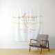 Elegant, modern, simple welcome to our wedding backdrop with gold rope heart and trendy handwritten script.