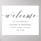 Simple Elegant Calligraphy Script Wedding Welcome Sign in beautiful flowing fancy letters and your personalized names, location, and date. A stylish yet simple formal design in black and white or any background color you choose. Just click the customize further link, shown under the text personalization area on the right, and choose your custom color background. This sign poster template makes it fast and easy to create stunning additions to your wedding decor. Signs can be enlarged, there are many sizes to choose from, as well as options for custom framing and matting. Welcome to our wedding custom signage.