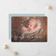 Introduce your new baby with this sweet and simple classic photo birth announcement. The welcome is an elegant and modern script and there's room for a large name, stats and parents names too. The back is a modern soft blue dotted with white. Perfect for sharing newborn photos with friends and family!