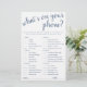 Simple "What's on Your Phone" shower/party game points card featuring a fun, casual hand-lettered script. The classic design includes a modern handlettered quote typography overlay. For other colors or matching products, please visit the JustFharryn Zazzle store, or contact the designer, c/o Fharryn@yahoo.com All rights reserved. #bohochic #zazzlemade
