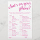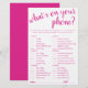 Simple "What's on Your Phone" shower/party game points card featuring a fun, casual hand-lettered script. The classic design includes a modern handlettered quote typography overlay. For other colors or matching products, please visit the JustFharryn Zazzle store, or contact the designer, c/o Fharryn@yahoo.com All rights reserved. #bohochic #zazzlemade
