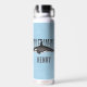 This design features a simple fun unique whimsical nautical, with ocean sea shark bite funny, a cute typography style design, a trendy stylish blue gray gray, a funny creative cool fish marine, a custom customize the personalized name, a scary novelty fish marine life, with nature animal water sea life, a coastal beach living house warming, a cool water bottle drinkware