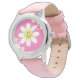 This adorable watch features white daisies and a pink background with customizable initial.
