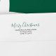 A simple yet elegant white 5x7 return address envelope designed to complement your holiday stationery. The back flap features Merry Christmas in hand-lettered script and opens to reveal an elegant hunter green interior. Personalize the plain envelope with your return address in a clean sans serif font for a refined finish. Perfect for Christmas invitations, holiday cards, and seasonal correspondence.