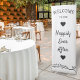 Simple black and white heart wedding banner with the bride and groom's name and anniversary date.