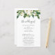 Floral wedding program featuring hand painted watercolor white roses and greenery along with "the wedding of" in an elegant handwritten script. The front side has your order of ceremony and the back has your wedding party and thank you message. These cheap wedding programs are printed on sheets of paper for a budget friendly option.