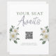 Efficiently organize your seating with our 'Simple White Floral Seating Sign featuring QR Code.' This beautifully crafted sign, with its white floral motif, offers a seamless way to guide guests to their tables, combining elegance with digital ease.