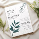 Simple white forest green foliage floral wedding invitation