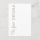 This stylish white and gold wedding details card makes a chic statement. Its elegant calligraphy and simple faux gold botanical accent blend sophistication and minimalism seamlessly. Perfect for a modern wedding theme, it lets you include reception, accommodation, and website details to keep your guests informed.