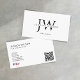 Simple minimalistic white design for your small business, elegant font on the white background with your monogram and a QR code added
