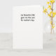 This greeting card features a plain white front with a single line of dark lettering centered on the page, creating a calm, spacious look. The message reads, “my favourite child gave me this card for mother’s day.” and it sits right in the middle as the only focal point. The letters are thick and easy to read, giving the words a confident, teasing tone that feels like a wink between close family members ❤️. With no drawings or extra decorations, the empty white space around the text makes the joke land gently, like a friendly nudge rather than a shout. The overall effect suggests an affectionate rivalry in the family, where the giver is playfully claiming a special place while still keeping it sweet 🌼. The text is in a dark, near-black color and stays neatly aligned, with the period closing the line like a crisp finishing touch. A wide margin of untouched white surrounds the centered sentence from edge to edge.
