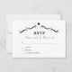 Simple white with black text RSVP card with an elegant ornamental design element.