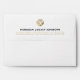 Elevate your business correspondence with our Simple White with Gold Logo Envelope. This A7 envelope features a clean and sophisticated design in clean white with a premade geometric logo and classic navy blue and golden typography. Customize it with your logo, company name, address, and contact information in classic golden typography for a professional touch. Perfect for sending out important documents, invitations, and more.