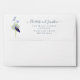 Simple wildflowers boho blue themed personalized address wedding invitation envelope perfect for a spring meadow, summer garden wedding. Beautiful artist hand painted watercolor minimalist bouquet cornflower cosmos and poppy with delicate foliage in blush blue, navy blue and cornflower blue hues. Personalized elegant modern typography script in navy blue complements this modern minimalist self addressed envelope. Original artwork by artist Catherine Sweetman