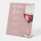 Simple Elegant Wine Bar List Bridal Shower Drink Menu Pedestal Sign - Perfect for a wine themed bridal shower or wine tasting brunch with the bride to be. This elegant and minimal bridal shower drink menu sign features a single wine glass with red wine on a blush pink background. White script and block font add a feminine and romantic feel. Customize this editable bridal shower signage template with your own event details. Add to your bridal shower drinks station or bar area.