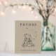This charming sign is perfect for adding a heartwarming touch to your baby shower, birthday party, or any celebration where favors are offered! It features a classic sketch illustration of Winnie the Pooh, happily sitting with his beloved "HUNNY" pot, surrounded by a few buzzing bees with whimsical dashed flight paths. The illustration is rendered in a dark sepia tone against a warm, neutral background. The prominent "FAVORS" title and clear "PLEASE TAKE ONE" message are effectively displayed, making this sign a delightful way to guide guests to their special treats with a touch of classic Disney magic.