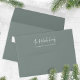 This design features an elegant Christmas envelope, with the return address on the back flap, a winter green, simple minimalist, script typography, a rustic design, with calligraphy, Xmas, classic minimal, a modern style.