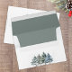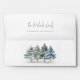 This design features an elegant Christmas envelope, with a watercolor pine trees, winter green, with the return address on the back flap, with a simple minimalist, script typography, with woodland forest, a seasonal design, a classic calligraphy style.