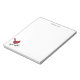 This simple and elegant notepad features a hand-drawn illustration of a red cardinal bird perched on a branch in black ink. Personalize with your name.
