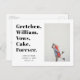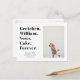 Simple and bold black text on white features a list of the wedding basics: you, your fiance, wedding vows, cake and your future forever, making this save the date postcard a modern way to send your big news to family and friends. Easy to customize text accommodates the wedding date and location with text on the back for your wedding website url and any extra information you want to share with guests.