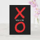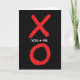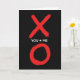 This card features a deep black background with a large red “X” near the top and a matching red “O” near the bottom. The red marks look like thick paint strokes, with rough, uneven edges that make them feel human and full of feeling. Between them, the words “YOU + ME” sit right in the center in white, simple sans-serif lettering that’s easy to read. The layout is straightforward, but it says a lot: hugs and kisses with the two of you right in the middle. The strong contrast of red and white on black makes the message feel direct, like you’re saying it without overthinking it. It’s a meaningful card to give when you want to show closeness, whether it’s romance or a steady, supportive kind of love 🥰. It also works for someone you’re building something real with—just you and them, side by side ❤️. Hope it helps you share your Valentine’s Day feelings in a way that’s honest and heartfelt.