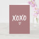 This greeting card centers on the big letters “XOXO” in white, with brushy strokes that look a little textured and imperfect in a human, caring way. The background is a soft dusty-rose pink that feels calm and intimate, like a quiet moment between two people. Along the edges of the white letters, there’s a faint deep red shadow that adds depth and a gentle hint of passion. Beneath the main text, a simple heart outline sits lower on the card, keeping the focus on love without adding clutter. The “XOXO” lettering looks like casual brush lettering, bright white and placed right in the middle so you see it first. It feels meaningful because it’s direct and familiar, like something you’d write in a note when words are hard to find 🥰. It’s a sweet way to let someone know you care, whether it’s romance or close friendship ❤️