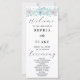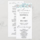 Introducing our elegant and beautiful wedding program that will add a touch of sophistication to your special day. The program features a stunning row of delicate pale pink and soft blue flowers with greenery arranged across the top front, creating a charming and whimsical feel. This design is perfect for those seeking a simple, minimalist, country, boho, or botanical aesthetic.