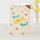 This card shows a close-up message that reads “I Just LOVE You!” right in the center. “I Just” and “You!” are written in deep teal letters, while “LOVE” stands out in bright yellow for a warm contrast. The “O” in “LOVE” is replaced with a small yellow heart, which makes the message feel extra caring 🥰. Behind the words, the background fades into a soft off-white blur with scattered red hearts around the edges. Some of those hearts look filled in and others are just outlines, giving the card a gentle, romantic setting without distracting from the main words. The lighting looks soft and even, so the paper texture and the sharp edges of the letters feel real and close. It’s a simple way to say something big, and it works for romance or close friendship when you want your feelings to be clear ❤️. Hope it helps you share your Valentine’s Day sentiments.