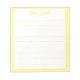 If you’re on the lookout for a pretty, simple, yellow notepad, you might appreciate this Simple Yellow Your Name Lined Notepad from Zazzle! 5.5" x 6" in size. 40 single side tear-away pages. FSC certified paper. Sold by the pad or in quantities of two or more. Buy them as is or easily personalize the name on the front to meet your gifting needs. Ideal for business, school or anywhere a pretty yellow notepad might be appropriate.