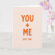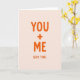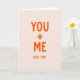 This card shows a soft peach background with simple orange lettering that stands out right away. In the center, it says “YOU + ME” in a thick, hand-drawn style with uneven edges, like it was written with a brush. The orange color feels warm and a little flirty, and the loose letter shapes make it feel human and real. Under that, the words “SEXY TIME.” appear in smaller orange letters, lined up beneath the main phrase. There aren’t any characters or objects—just the words—so the message feels direct and honest. It’s meaningful to give because it suggests closeness and attraction in a straightforward way, without needing extra images to explain it 🥰. If you’re sharing it with a partner who enjoys a bit of teasing and warmth, it can say a lot in just a few words ❤️. Wishing you an easy, heartfelt way to share Valentine’s Day feelings with someone you care about.