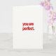 This greeting card centers on the simple message “you are perfect.” on a wide off-white background. The words are printed in bright red, using a plain, modern letter style that’s easy to read. The text sits right in the middle of the front, with lots of open space around it, so your eyes go straight to the message. There are no characters or extra objects, just the text and the soft paper texture showing through. The final period makes it feel steady and sure, like you really mean what you’re saying. It’s a meaningful card to give because it offers comfort and affection without trying too hard, whether it’s for a partner or a close friend 🥰. The simple look also leaves room for your own note inside, which can make the moment feel even more personal ❤️. Hope it helps you share Valentine’s Day feelings in a kind, honest way.