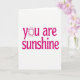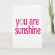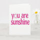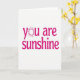 This greeting card features the words “you are sunshine” in hot pink on a plain white background. The text sits centered in two lines, with “you are” on top and “sunshine” underneath. The letters are rounded and friendly, making the message feel easy to say out loud. In the word “you,” the “o” is drawn as a small sun, with a circle center and short rays around it. That little sun detail adds a sweet reminder that the person you’re giving it to brings light into your day. The strong pink color against the white space feels warm and affectionate without needing any extra pictures. It’s a meaningful card for a partner or a close friend when you want to say “you matter to me” in a simple way 🥰❤️. Hope it helps you share your Valentine’s Day sentiments.