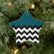 Simple Zigzag Lines And Dark Blue Teal Pattern Ceramic Ornament