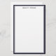 A simple and elegant stationery design with a Dark Blue and White graphic frame, a white background and black print for your name. (The black print for your name can easily be customized to a color of your choice.)