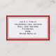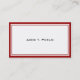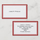 A simple business card with a Red and White graphic frame, with a white background and black print. Customized details that you'll want to include are on the reverse side, which also has the Red and White frame, a white background and black print.