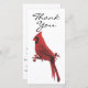 Modern funeral thank you card featuring a striking red watercolor cardinal sittng on a tree branch with the text 'thankyou', and on the back is a personalized sympathy appreciation template with a photo.