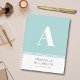 Modern aqua monogram notebook with customisable name and additional text. Personalize to your own requirements. Matching items available.